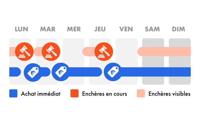 Des véhicules disponibles à l’achat 24h/24. Les véhicules sont toujours accessibles (sauf pendant les enchères) et de nouveaux modèles sont ajoutés chaque jour à 17h pour élargir votre choix.